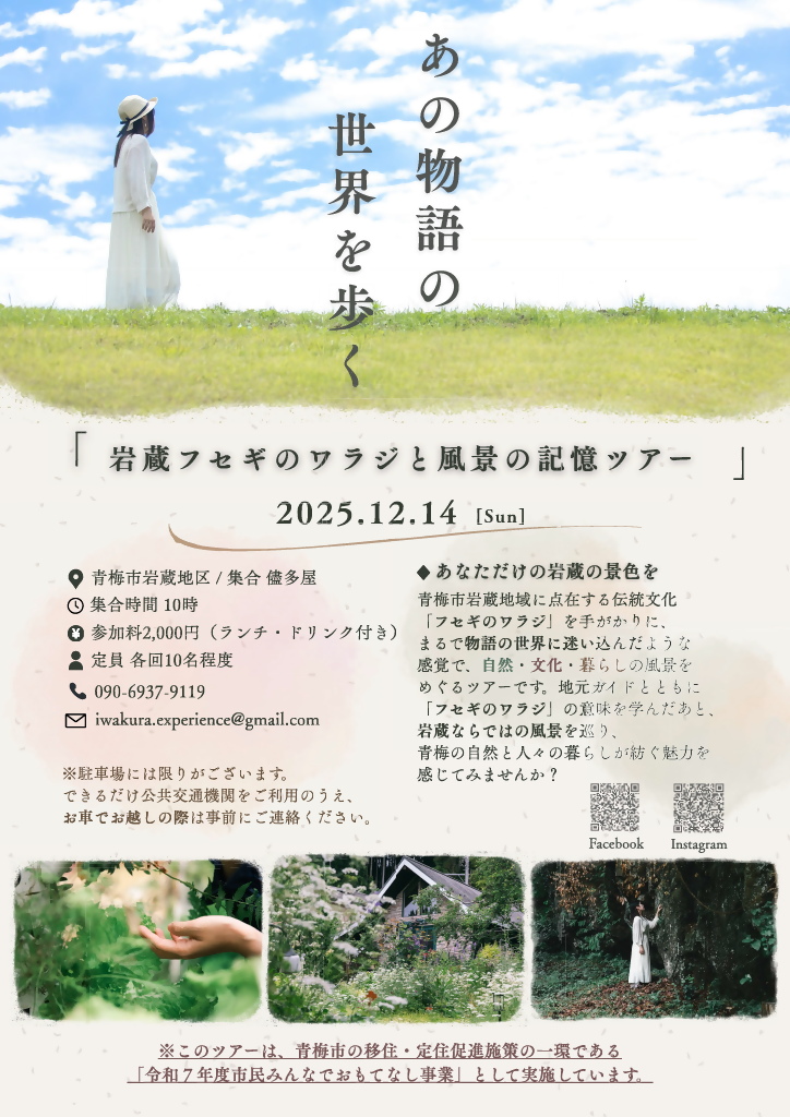 今回は、Iwakura Experienceさんの主催する「あの物語の世界を歩く~岩蔵フセギのわらじと風景の記憶ツアー~」をご紹介します♩