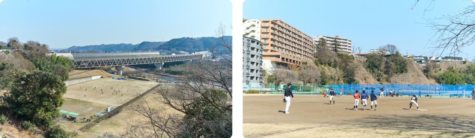 河辺下グラウンドでは、野球、テニス、サッカーのほか、多摩川では釣りなど市民の憩いの場になっている